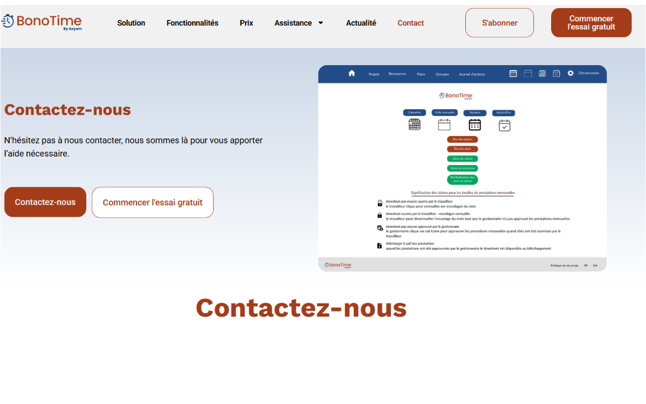 En cas de besoin, notre support technique est disponible pour vous accompagner et vous aider à tirer le meilleur parti de Bonotime.